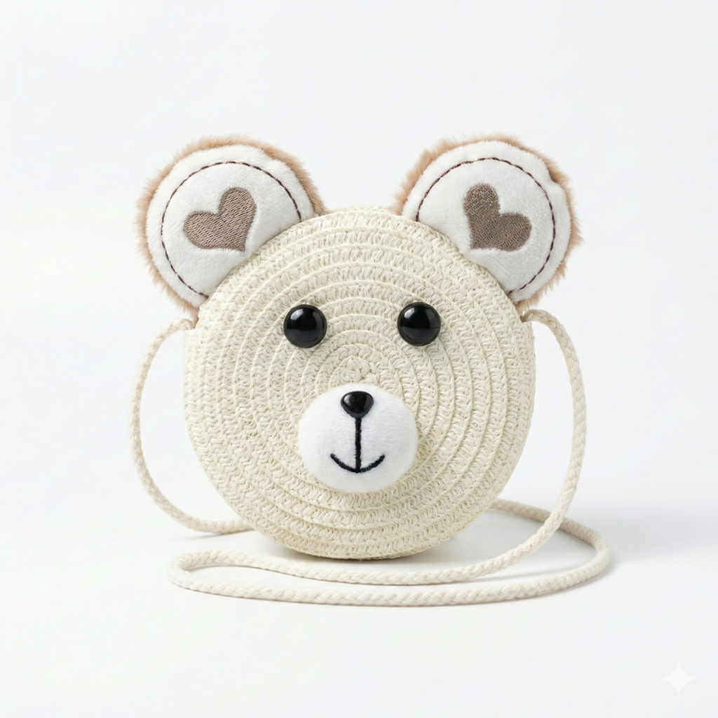 $12.00Woven Straw Teddy Bear Crossbody Bag with Heart Ears