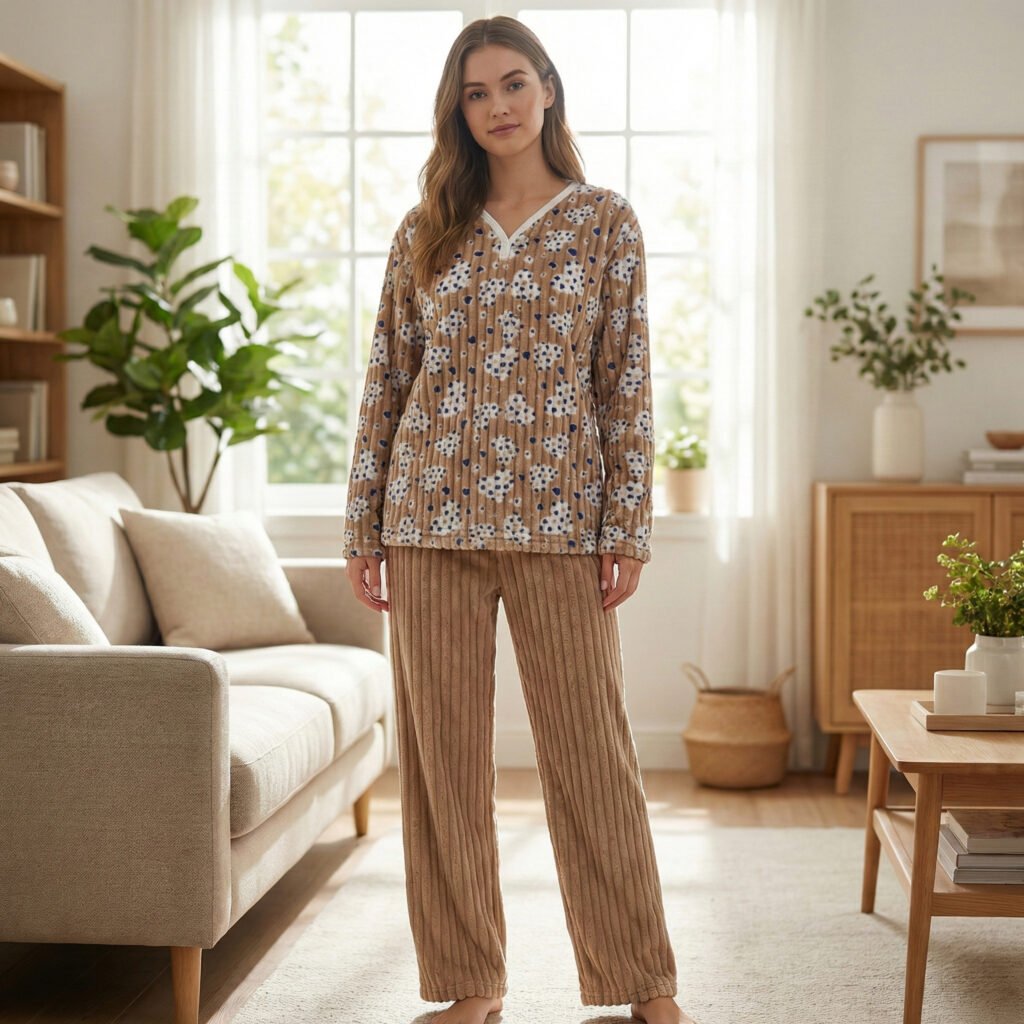 Ribbed Fleece Heart Print Pajama Set