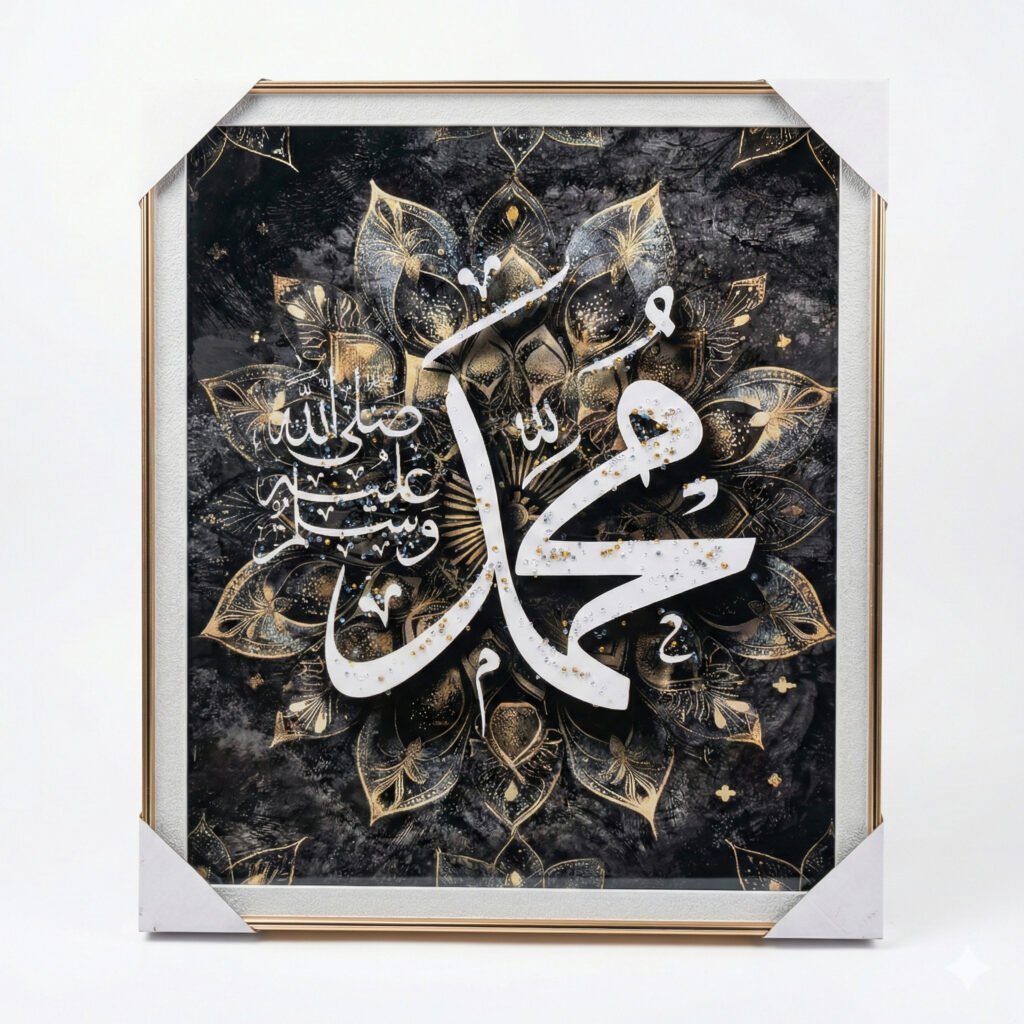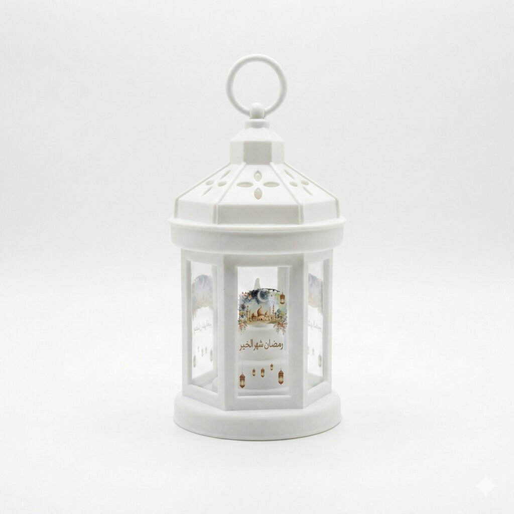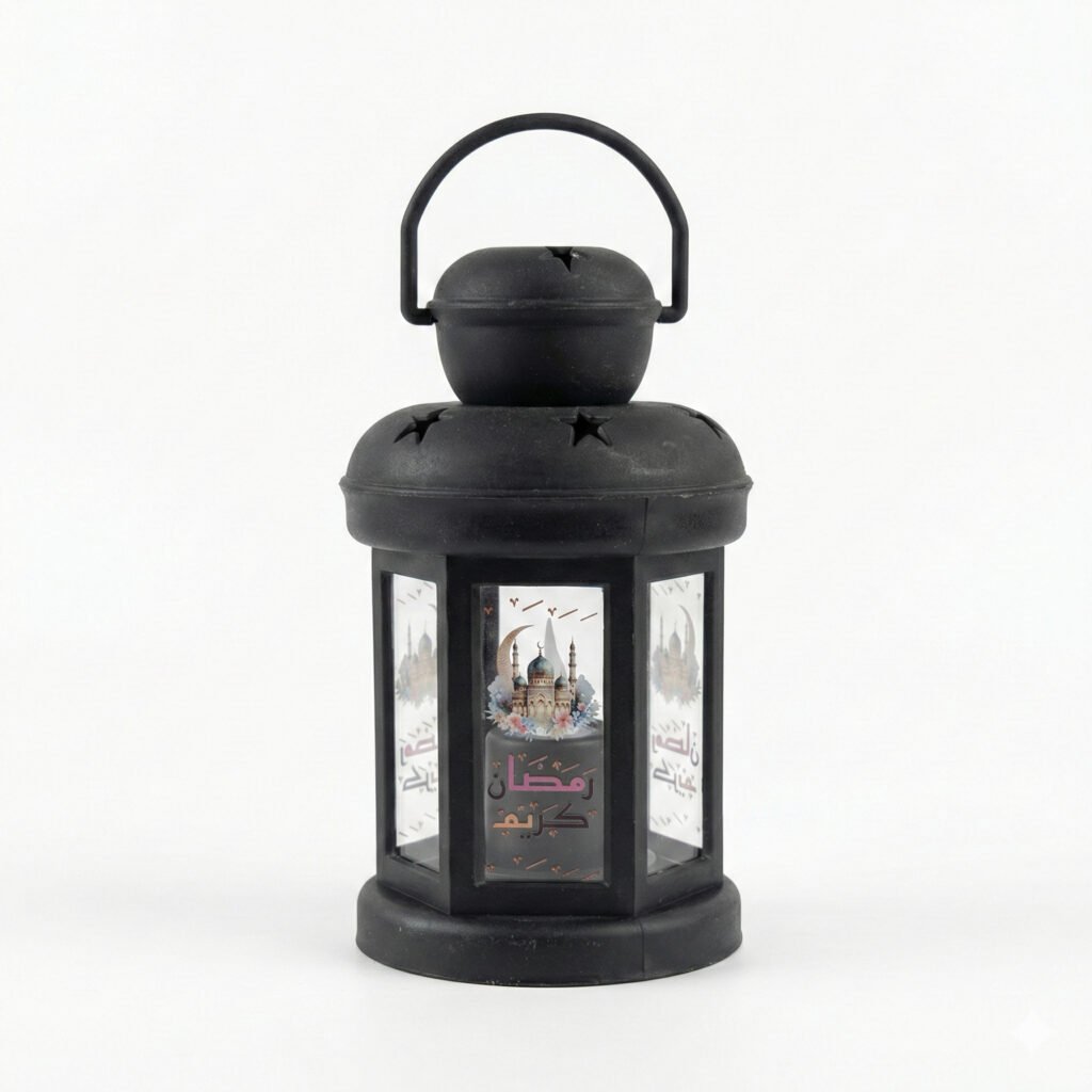 LED Ramadan Mubarak Lantern with Mirror Glass & Calligraphy