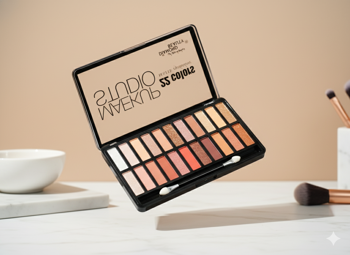 Beauty Diamond Studio Makeup 22 Colors Palette is a 22-pan eyeshadow palette. It features a curated selection of shades, including mattes and shimmers, in a compact format