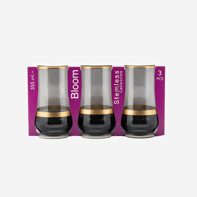 Bloom Stemless Glass Cups Set, 3 Pcs, 355 ml