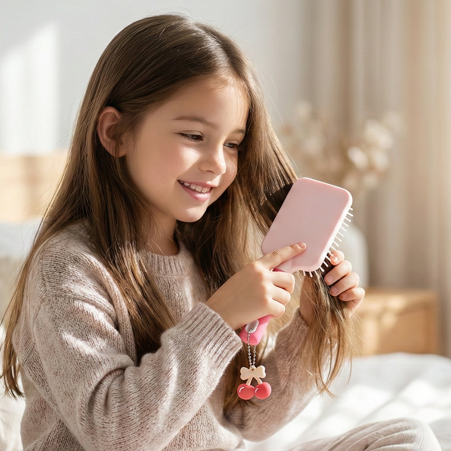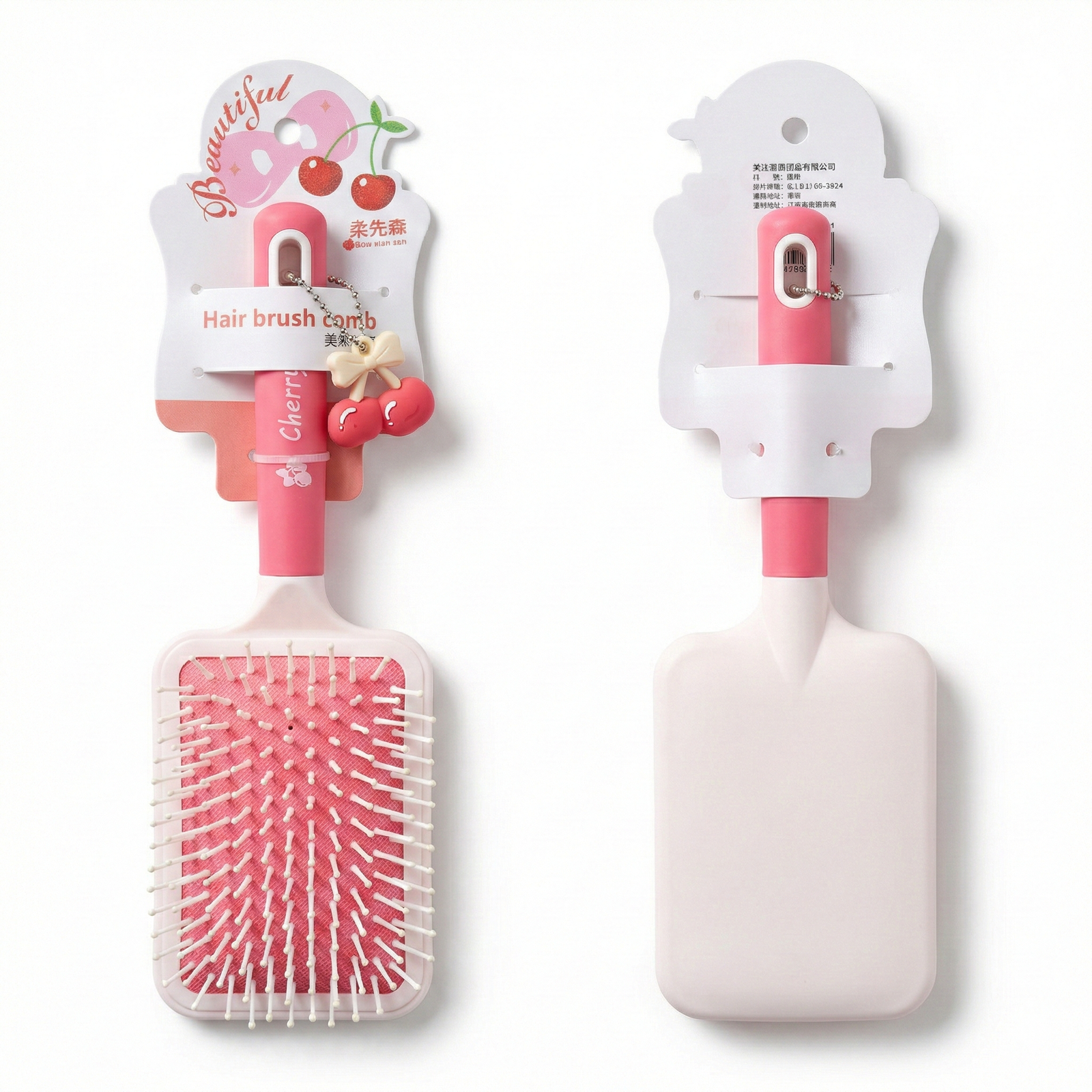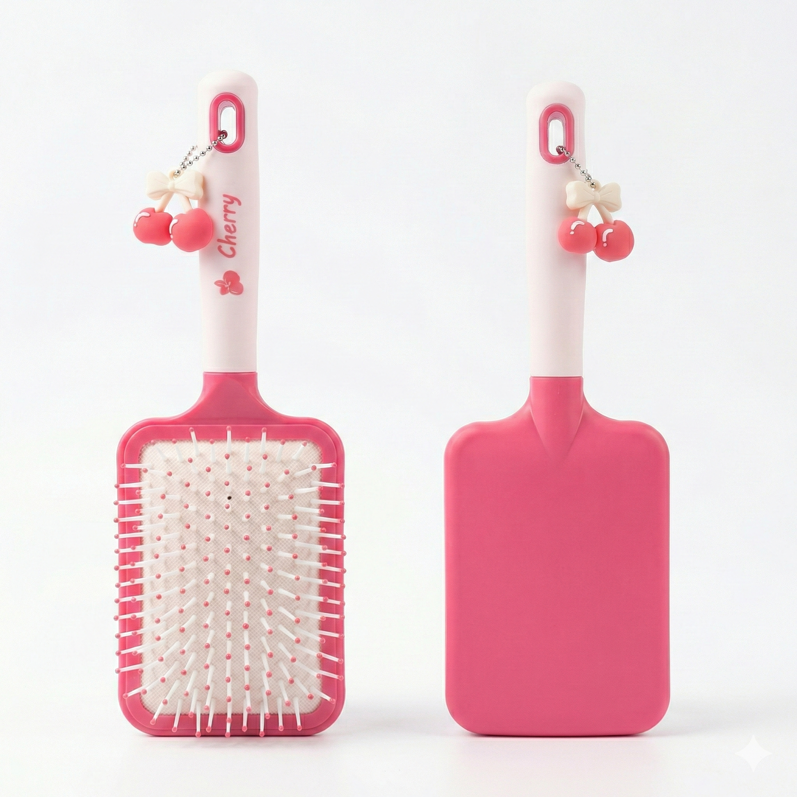 Detangle Paddle Hair Brush is a charming, air-cushioned paddle brush featuring flexible bristles and a 3D cherry charm for painless detangling.