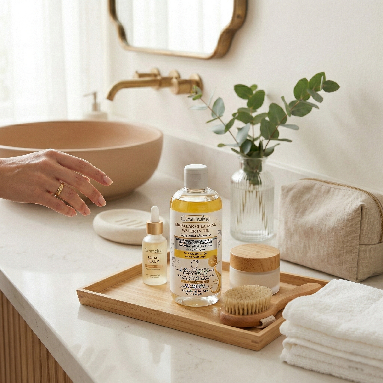 Cosmaline Micellar Cleansing Water In Oil is a highly efficient bi-phase cleanser designed to remove even the most stubborn waterproof makeup. Enriched with Argan Oil and Macadamia Oil, it nourishes and protects the skin barrier while relieving irritation. This no-rinse formula is dermatologically and ophthalmologically tested, ensuring it is safe for the face, eyes, and lips without leaving a greasy residue.