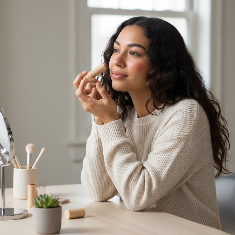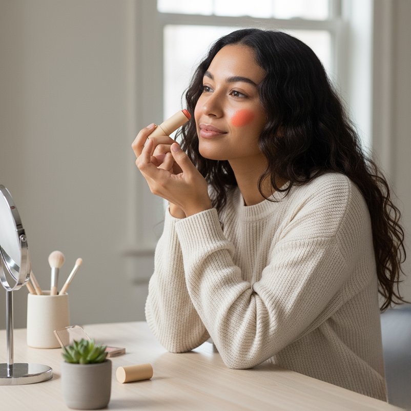 Dali Beauty Creamy Blush Stick. This product is a lightweight, long-wear blush delivered in a highly blendable, cream-to-satin stick format. It is designed for precise, controlled, and mess-free cheek color application. The formula melts effortlessly into the skin for a natural, healthy-looking flush and offers buildable coverage from sheer to medium. It is noted to be Gluten-Free, Cruelty-Free, Paraben-Free, and Dermatologically Tested.