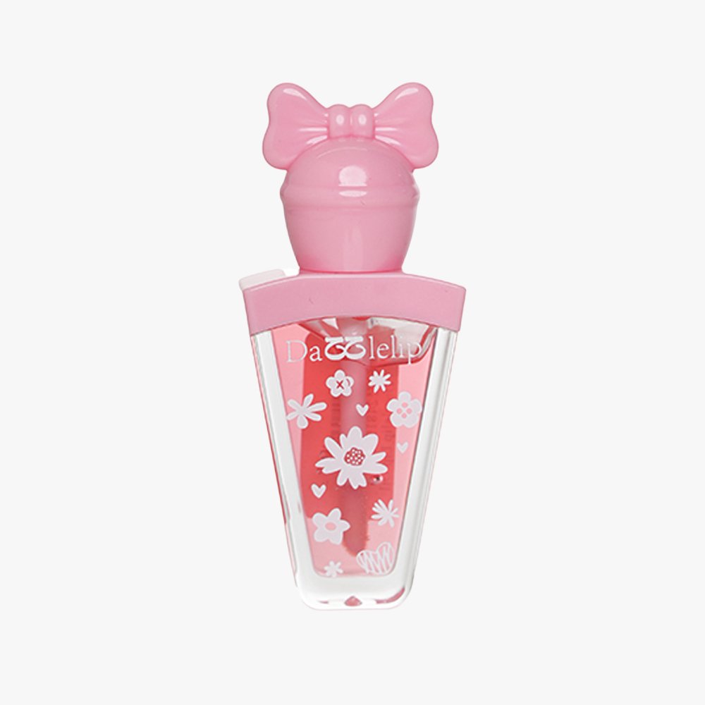 DAZZLelip Red Lip Tint is a bright, pigmented liquid lip product, likely a lip stain or gloss, characterized by its unique bottle design featuring a bow-shaped cap and a triangular body decorated with flowers. This product is typically sold in the ‘Red’ or ‘Orange’ color family to give a vibrant flush of color. It is intended to offer bold pigmentation for a playful and stylish look, often marketed to younger users.