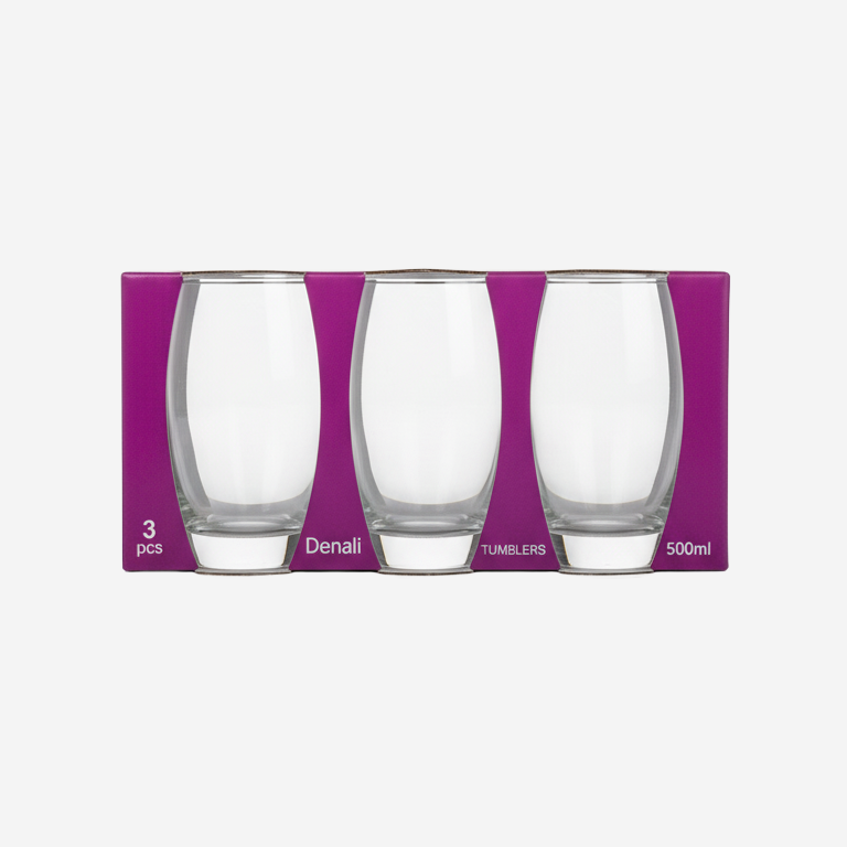 Denali Glass Tumblers Set, 3 Pcs (500 mL) is a practical collection of three large, 500 mL clear glass tumblers featuring a stable, rounded design for everyday refreshment.