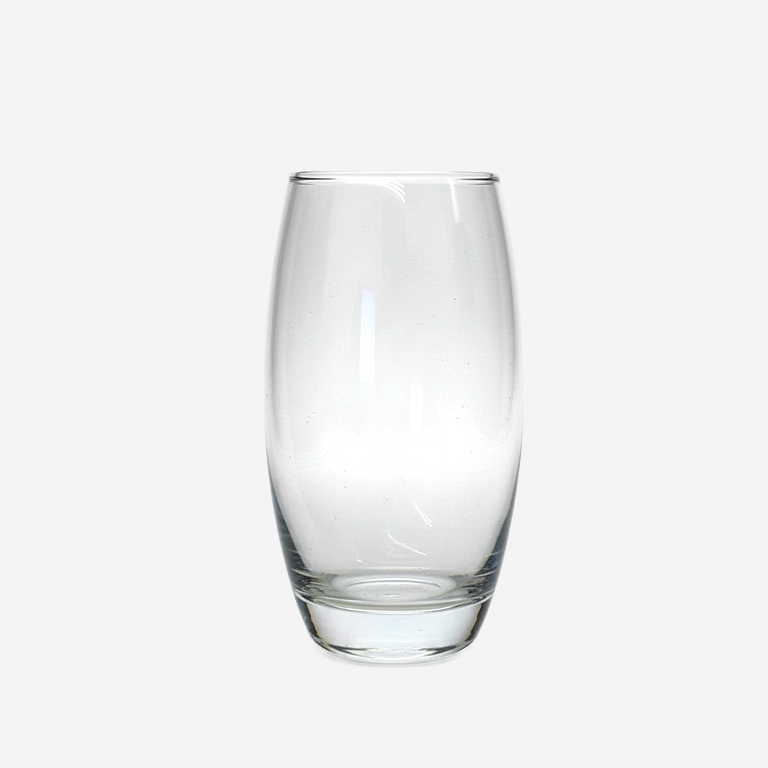 Denali Glass Tumblers Set, 3 Pcs (500 mL). This set includes three generously sized clear glass tumblers, each with a half-liter (500 mL) capacity, perfect for large servings of iced tea, water, juice, or any cold beverage. The tumblers feature a distinctive, slightly rounded or barrel-shaped body that is easy to grip and a sturdy, weighted base for stability. Their large volume and classic design make them an excellent choice for daily home use, entertaining guests, or serving drinks at parties. The quality glass construction ensures durability and clarity.