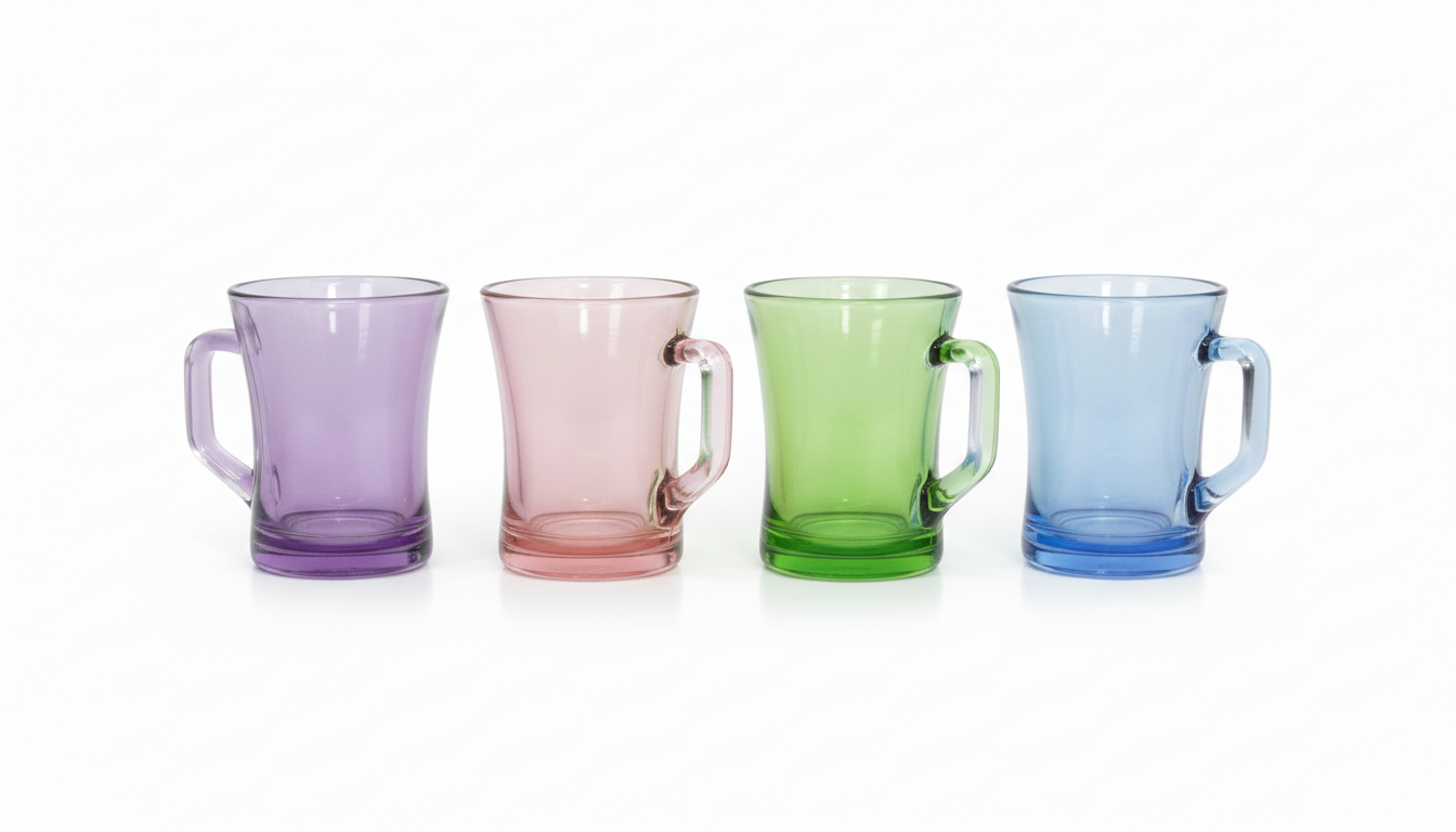 Excel Mug 4-Piece Colorful Glass Set is a stylish collection of four heat-resistant glass mugs in assorted vibrant colors, perfect for everyday use.