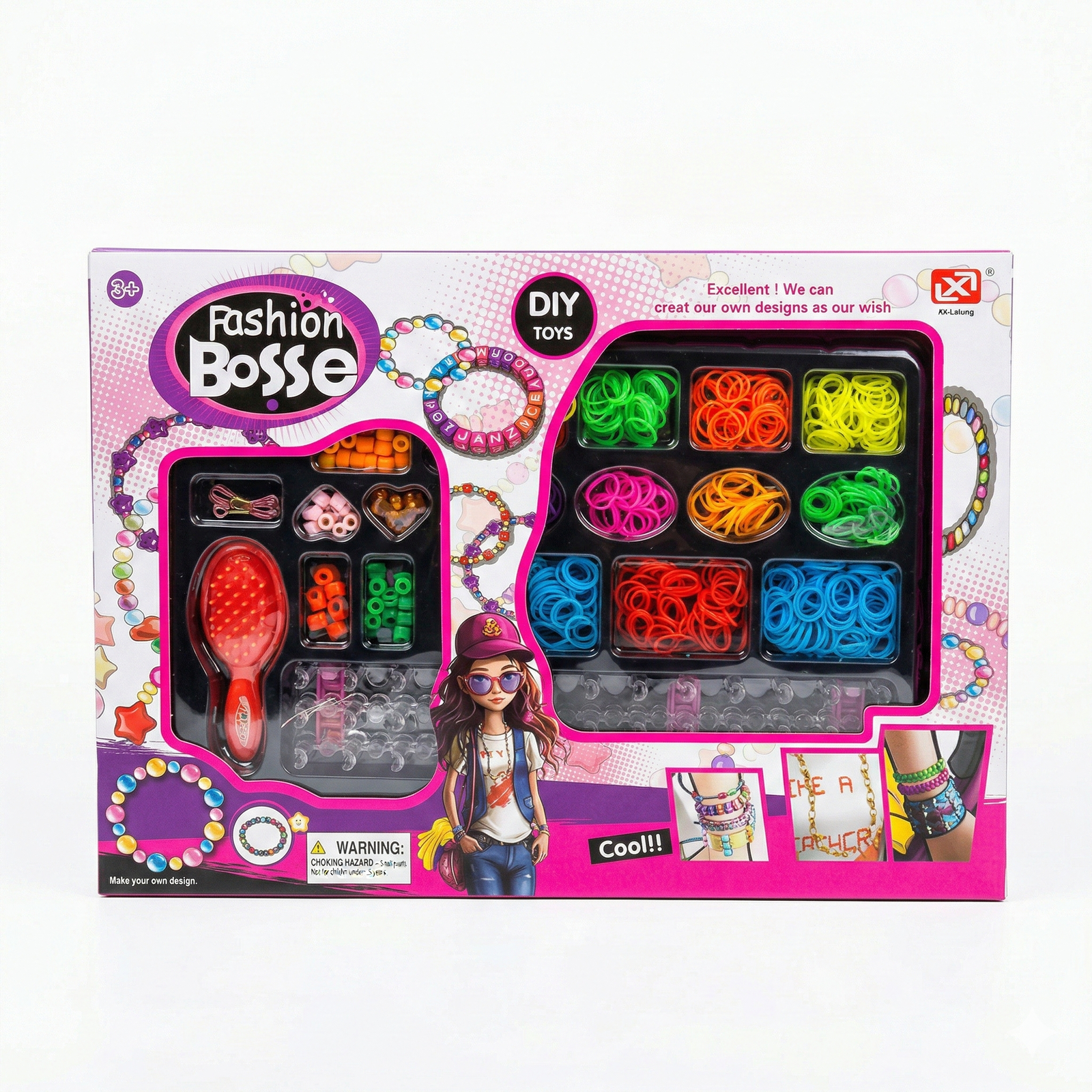 Fashion Bosse DIY Jewelry Making Kit is an all-inclusive craft set featuring colorful loom bands and beads for kids to design custom bracelets and necklaces.