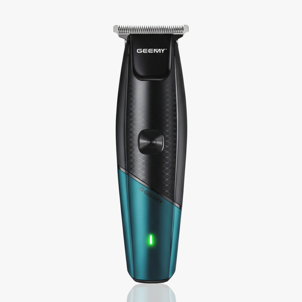Geemy Professional Cordless Hair Trimmer GM-8059 is a high-performance grooming machine with an ergonomic, low-noise design and a stylish blue/teal finish. It is equipped with a high-power motor (often up to 7000 RPM in this series) and precision stainless steel blades designed for a sharp, zero-gap cut. The trimmer features fast charging (as quick as 1 hour) and a long-lasting lithium battery (approx. 150 minutes run time), making it ideal for continuous professional or home use. It is a versatile tool for hair clipping, beard trimming, and detailed line work.
