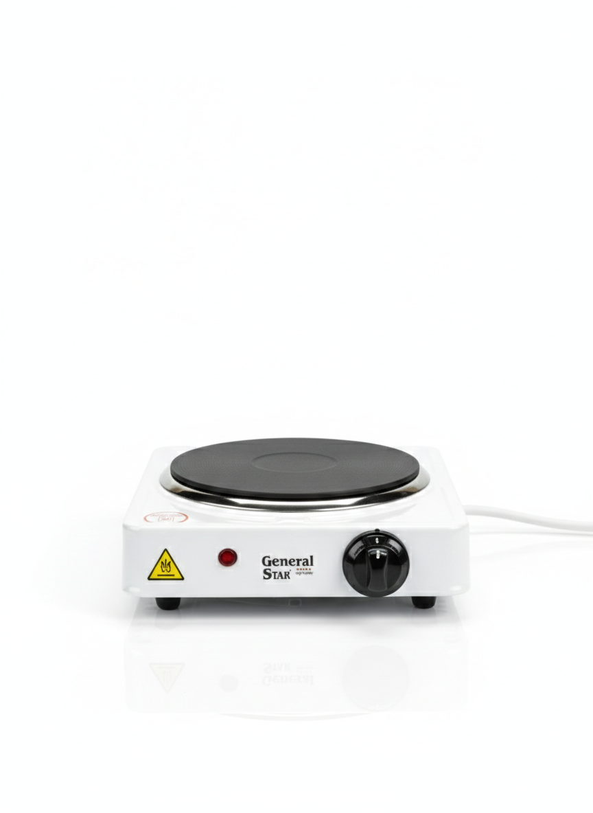 Electric cooking plate by General Star is a powerful 1500W single burner designed for versatile kitchen use. It features a high-quality solid cast iron heating element that ensures even heat distribution and long-lasting durability. The unit is equipped with an adjustable auto-thermostat offering 5 heat levels, allowing for precise temperature control from simmering to boiling. Safety features include an operating ON/OFF indicator light and overheat protection, making it ideal for dorms, offices, camping, or as an extra burner at home.