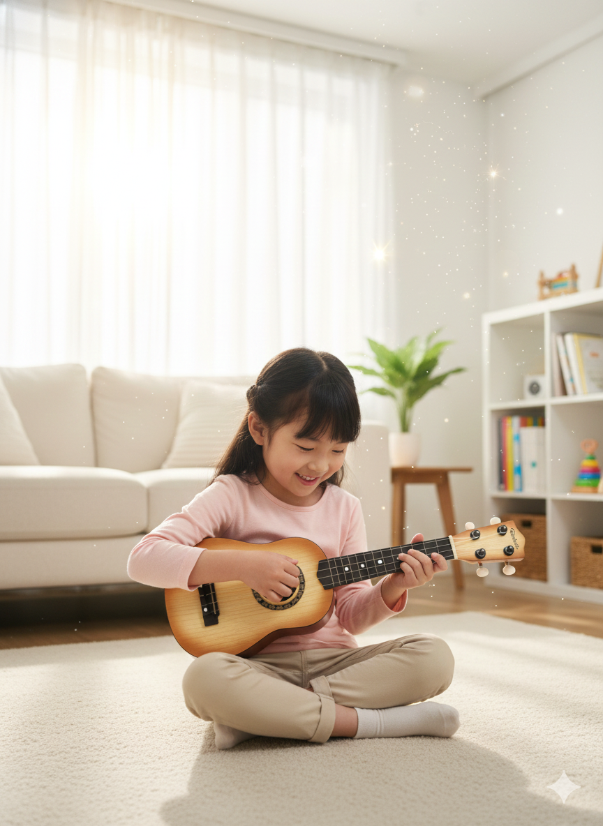Kids 17-Inch Ukulele Toy Guitar is a safe, 4-string educational instrument for young children to develop an early interest in music.