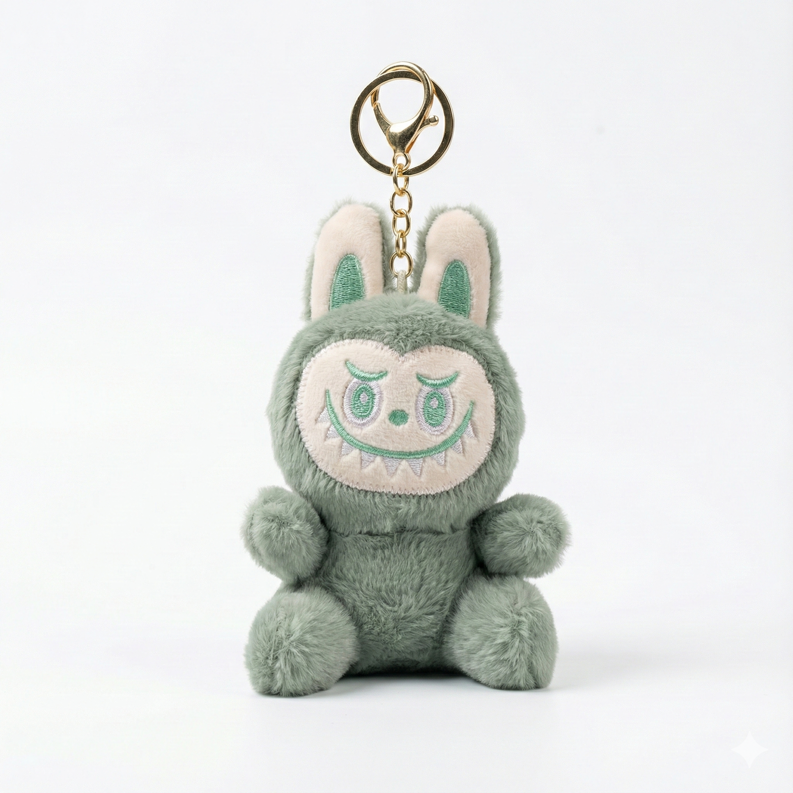 Labubu Monster Bunny Plush Keychain is a highly collectible accessory featuring the iconic “The Monsters” character. This plush version includes a soft, shaggy body paired with a detailed vinyl face. Known for its signature wide smile and sharp, pointed teeth, this keychain blends edgy “creepy-cute” aesthetics with high-quality craftsmanship. It comes with a durable gold-toned metal O-ring, making it perfect for attaching to backpacks, handbags, or keys.