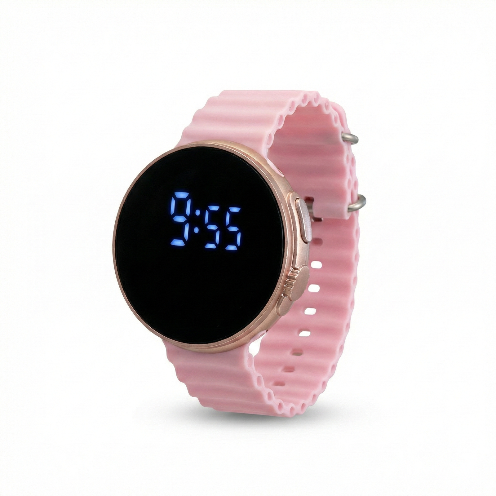 LED Digital Watch features a modern, minimalist design that blends fashion with functionality. It boasts a sleek circular case with a black digital face that displays the time in bright, easy-to-read LED numerals. The defining feature is the flexible, soft-touch silicone strap with a unique wavy texture, providing maximum comfort and a contemporary look suitable for sports, school, or casual daily wear.