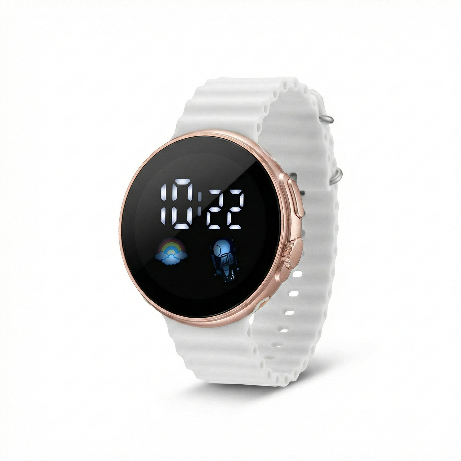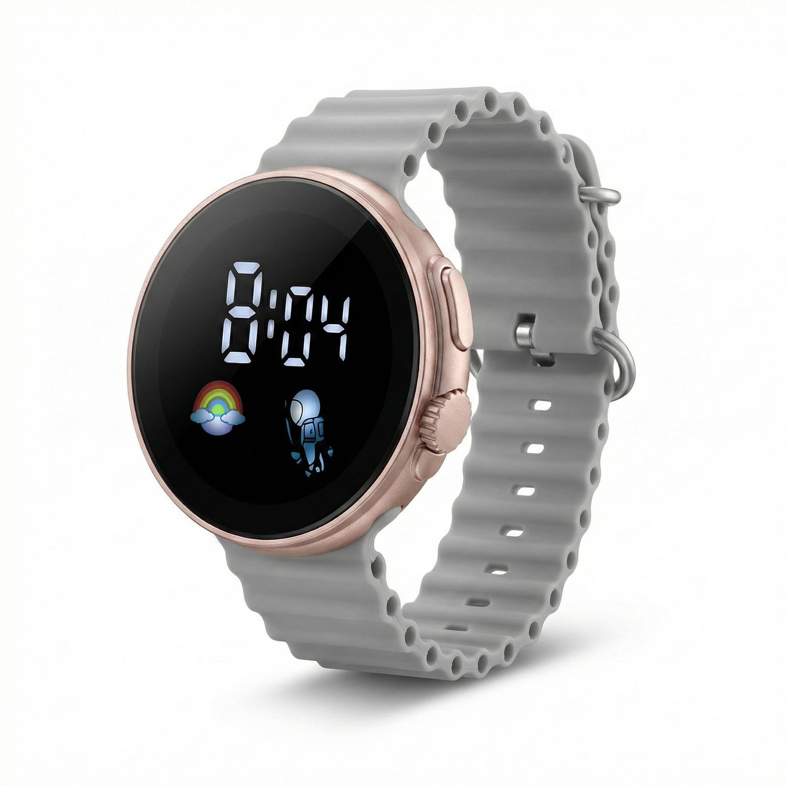 LED Digital Watch featuring a stylish circular display and a comfortable, unique wavy silicone band for a modern aesthetic.