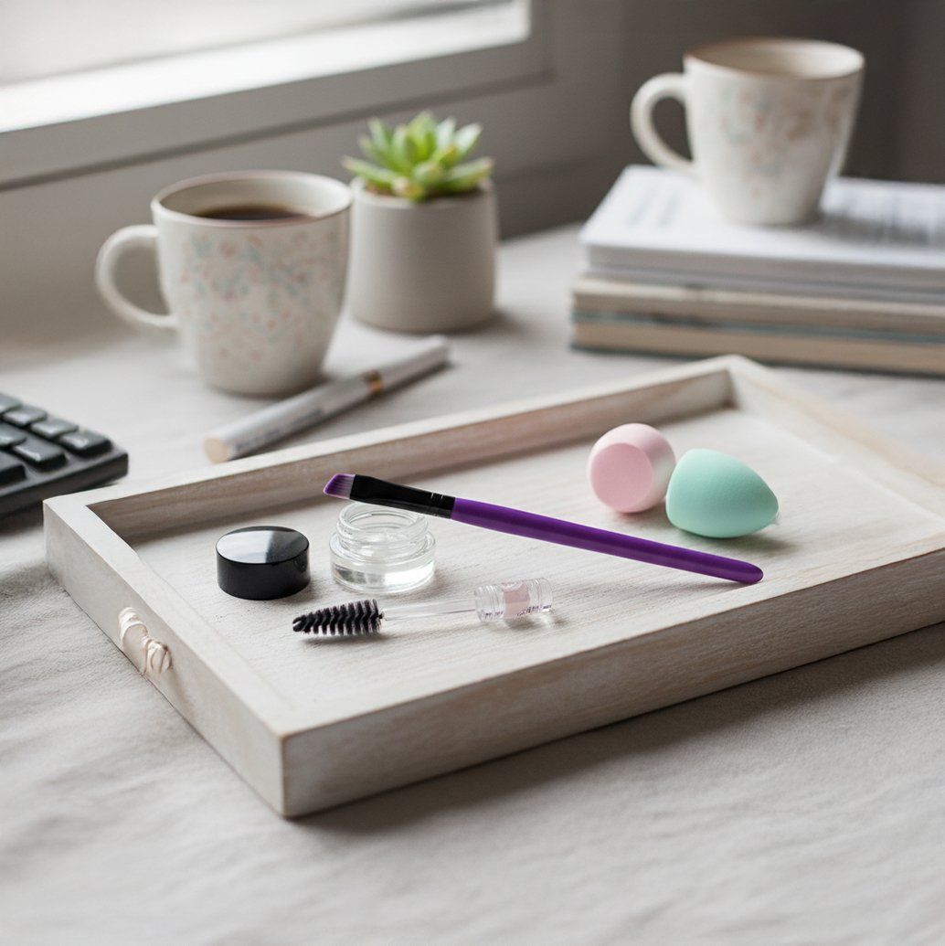 Makeup Brush: A single, soft, synthetic-bristle tapered eyeshadow or blending tool for detailed eye makeup application.