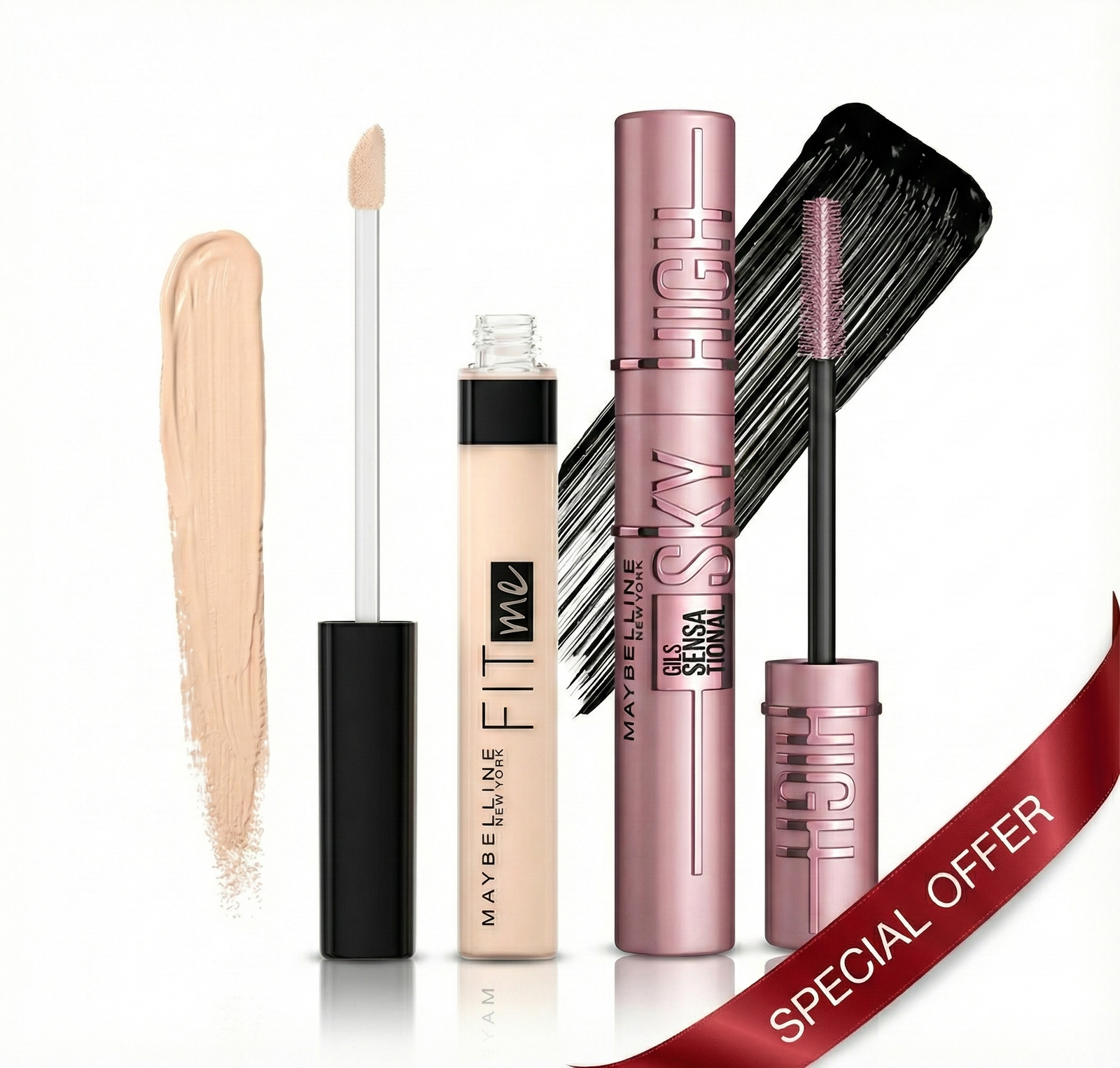 Maybelline Fit Me & Sky High Bundle is the ultimate duo for a fresh, “no-makeup” look with high-impact eyes. It includes the Fit Me Concealer, an oil-free formula that offers breathable, natural coverage to hide imperfections, and the Sky High Mascara, which uses a flexible Tower brush to deliver limitless length and full volume. Together, they provide a polished appearance that is dermatologist and ophthalmologist tested.