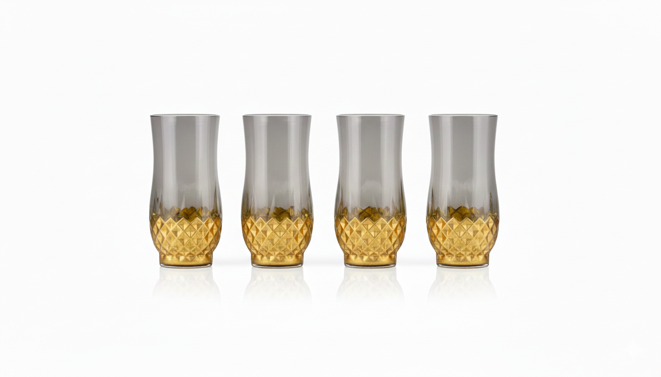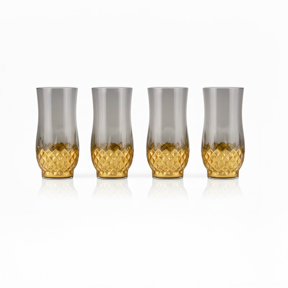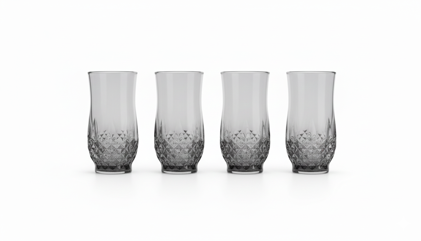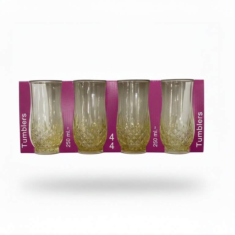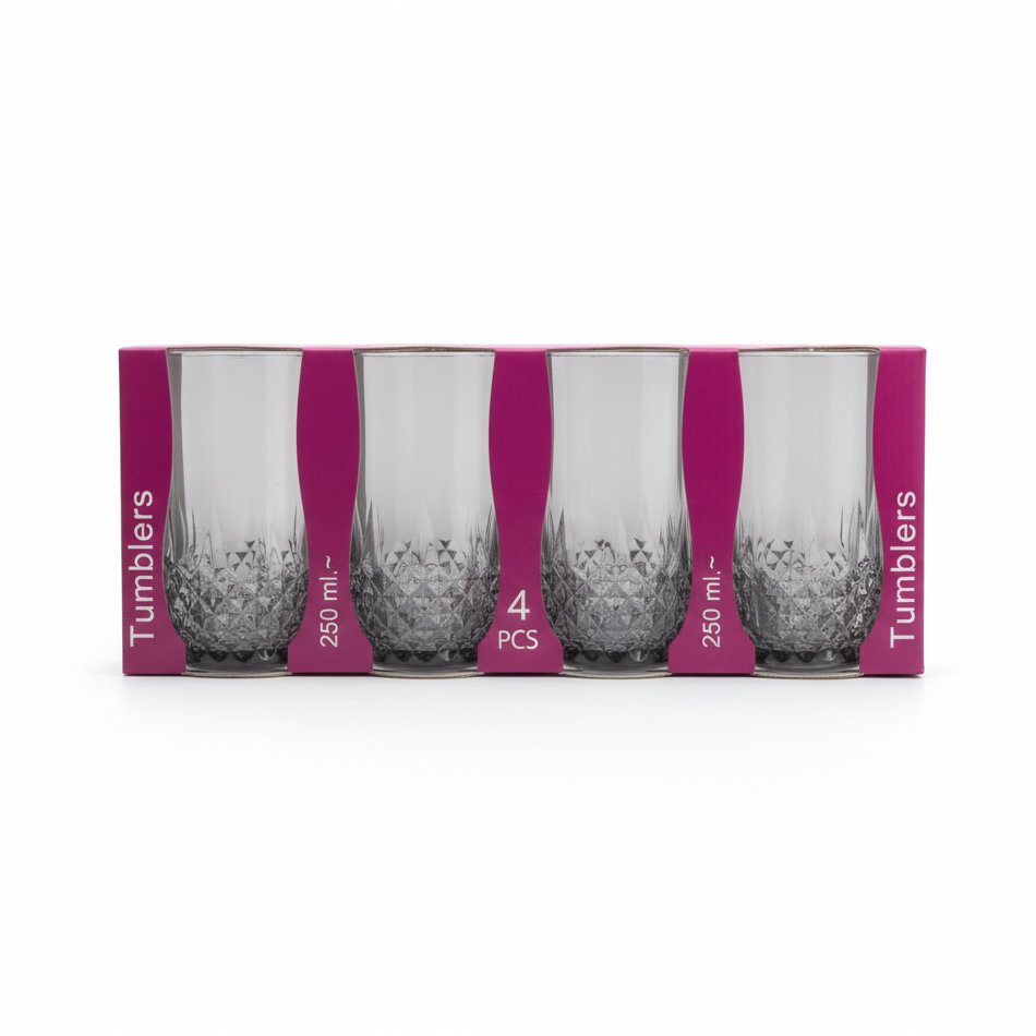 Diamond glass tumblers in a 4-piece set offer an elegant and durable solution for serving drinks with a stylish 250ml capacity.