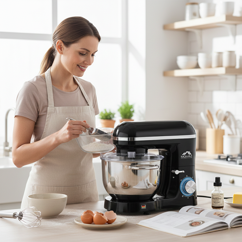 MOMAZ Berlin Series Stand Mixer is a powerful 1400W appliance with a 5.5L stainless steel bowl and 6 speeds, ideal for various baking needs.