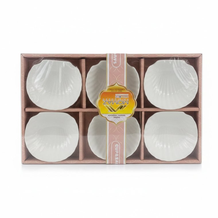 Shell shaped sauce dish set by Momaz is a premium ceramic serveware collection designed for elegant table settings. This 6-piece set features a classic scalloped shell motif, perfect for serving soy sauce, dips, oils, or condiments. Crafted from high-quality, glossy white porcelain, these dishes are both chip-resistant and dishwasher-safe, blending nautical charm with modern durability.