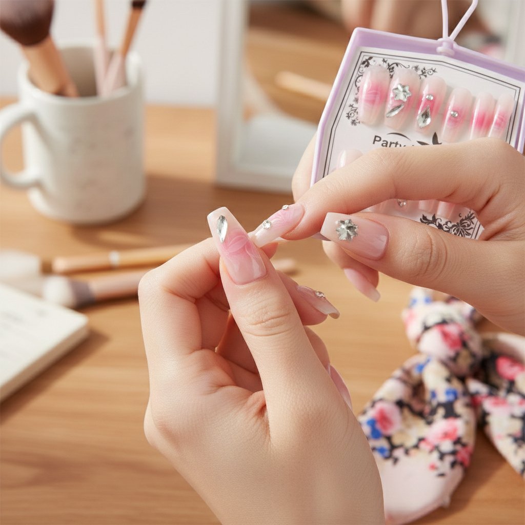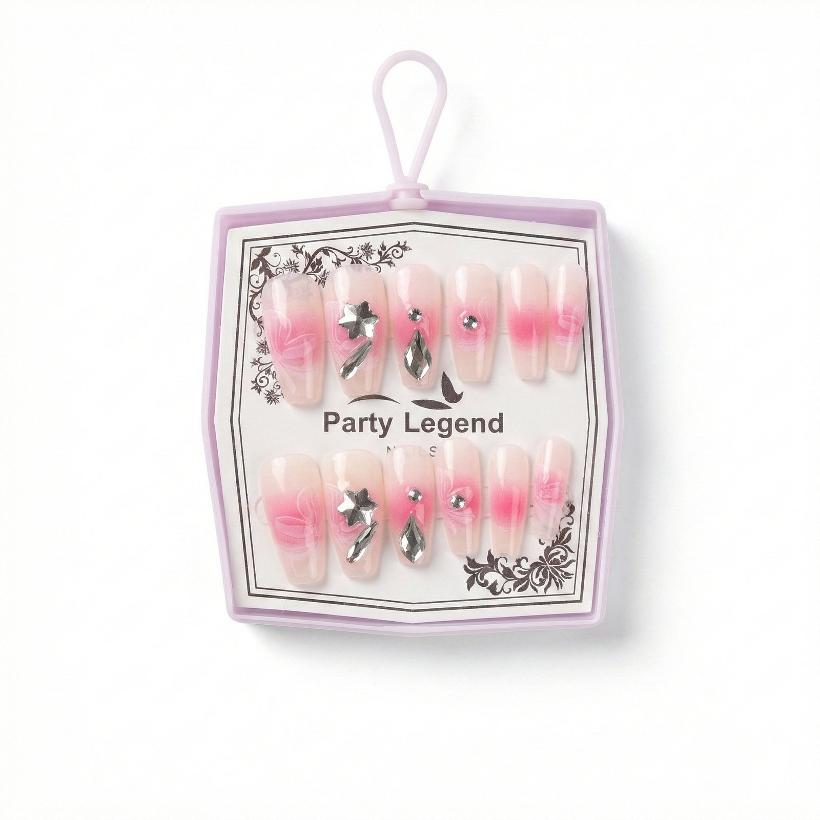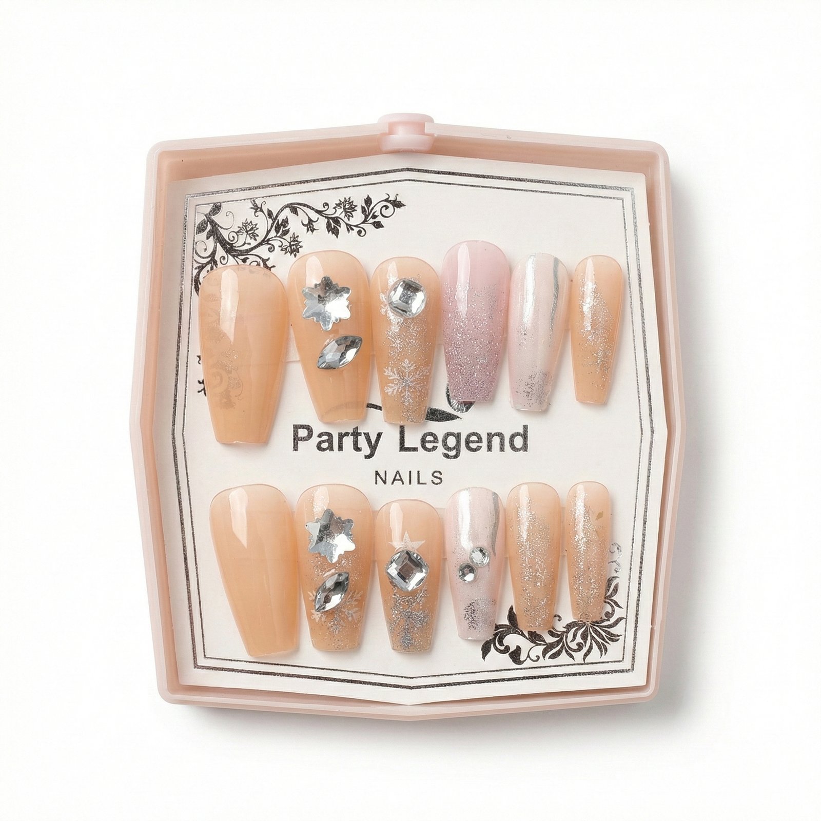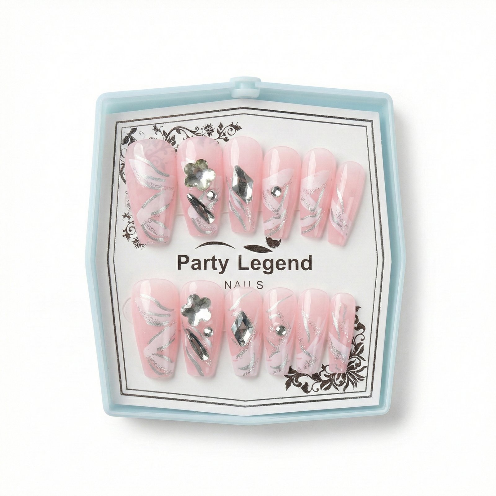Party Legend 3D Embellished Press-On Nails offer an elegant manicure solution featuring luxury 3D gems and artistic designs for a standout look.