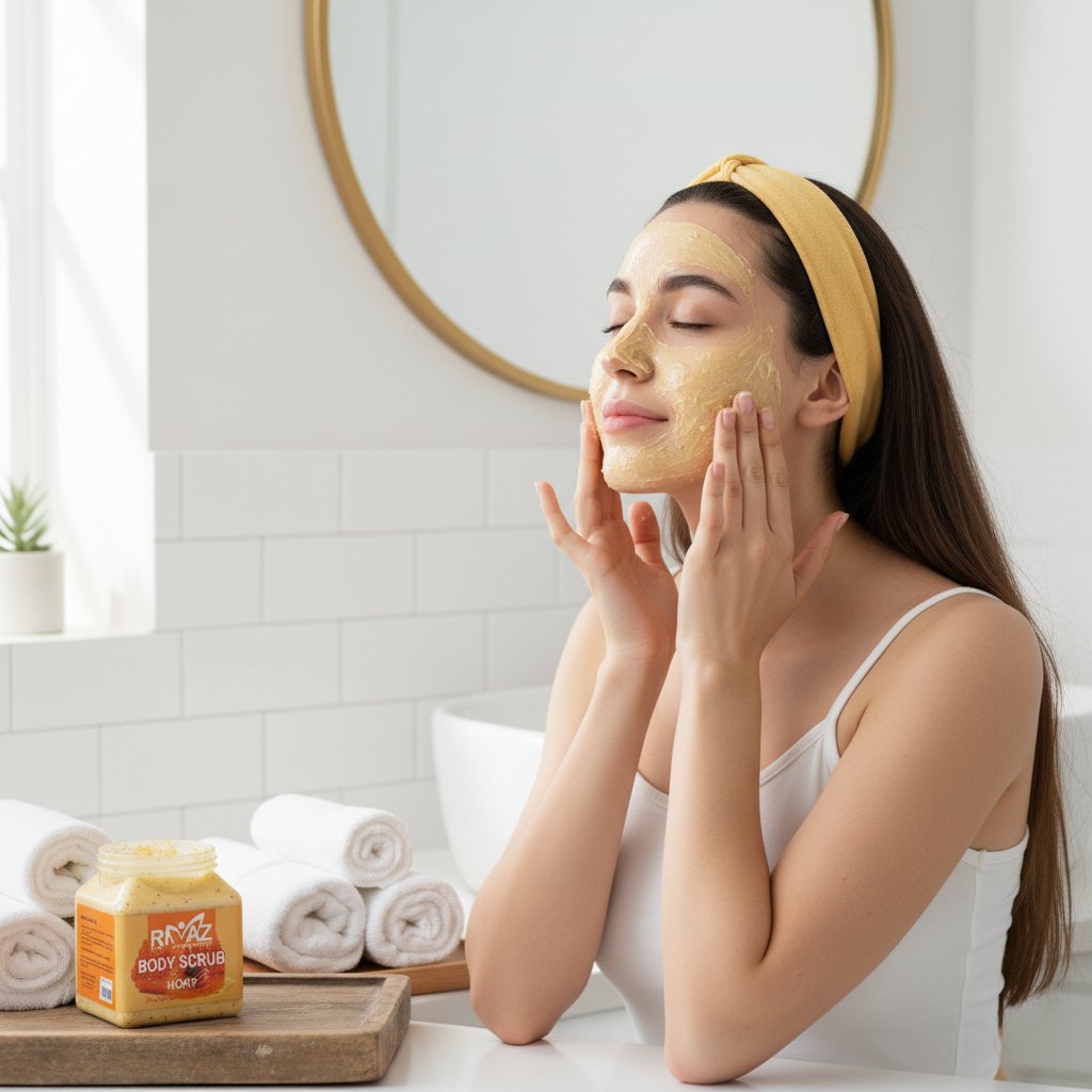 Rivaz Body Scrub is your perfect choice for refreshing and cooling your skin. This scrub gently removes dead skin cells and impurities,