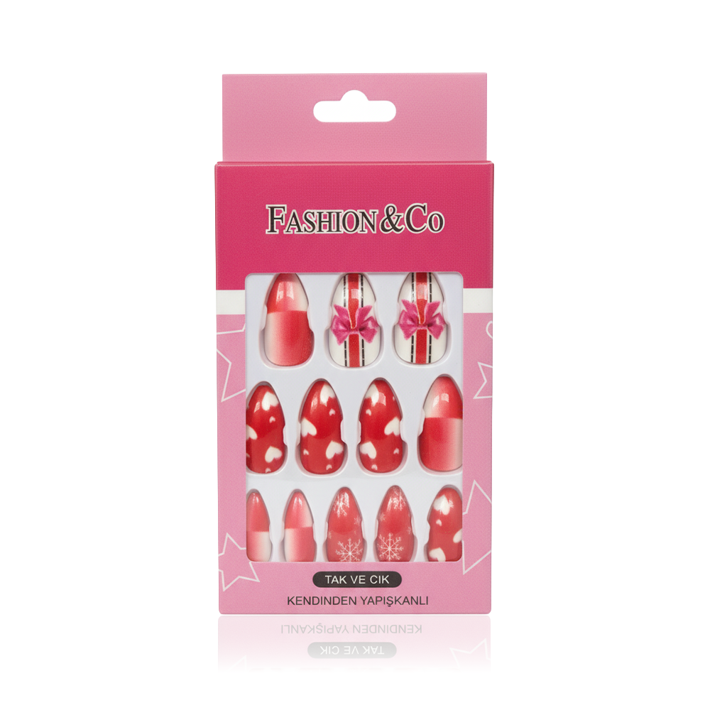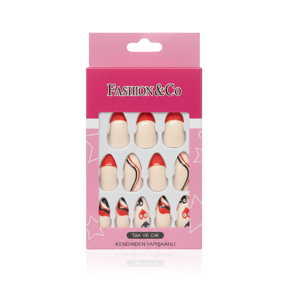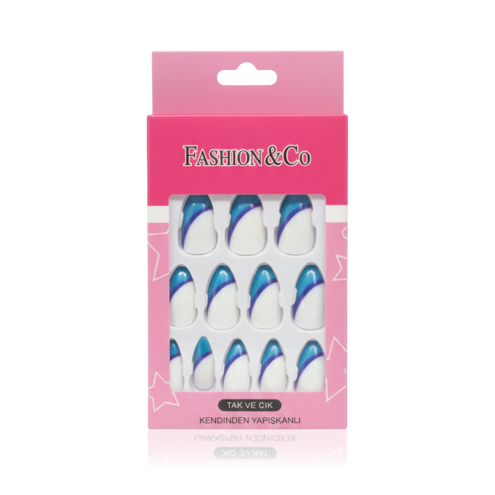 Self-Adhesive Press-On Nails featuring a glossy. The set is self-adhesive, providing a quick, glue-free application for an instant manicure. Contains multiple sizes for a comfortable fit.