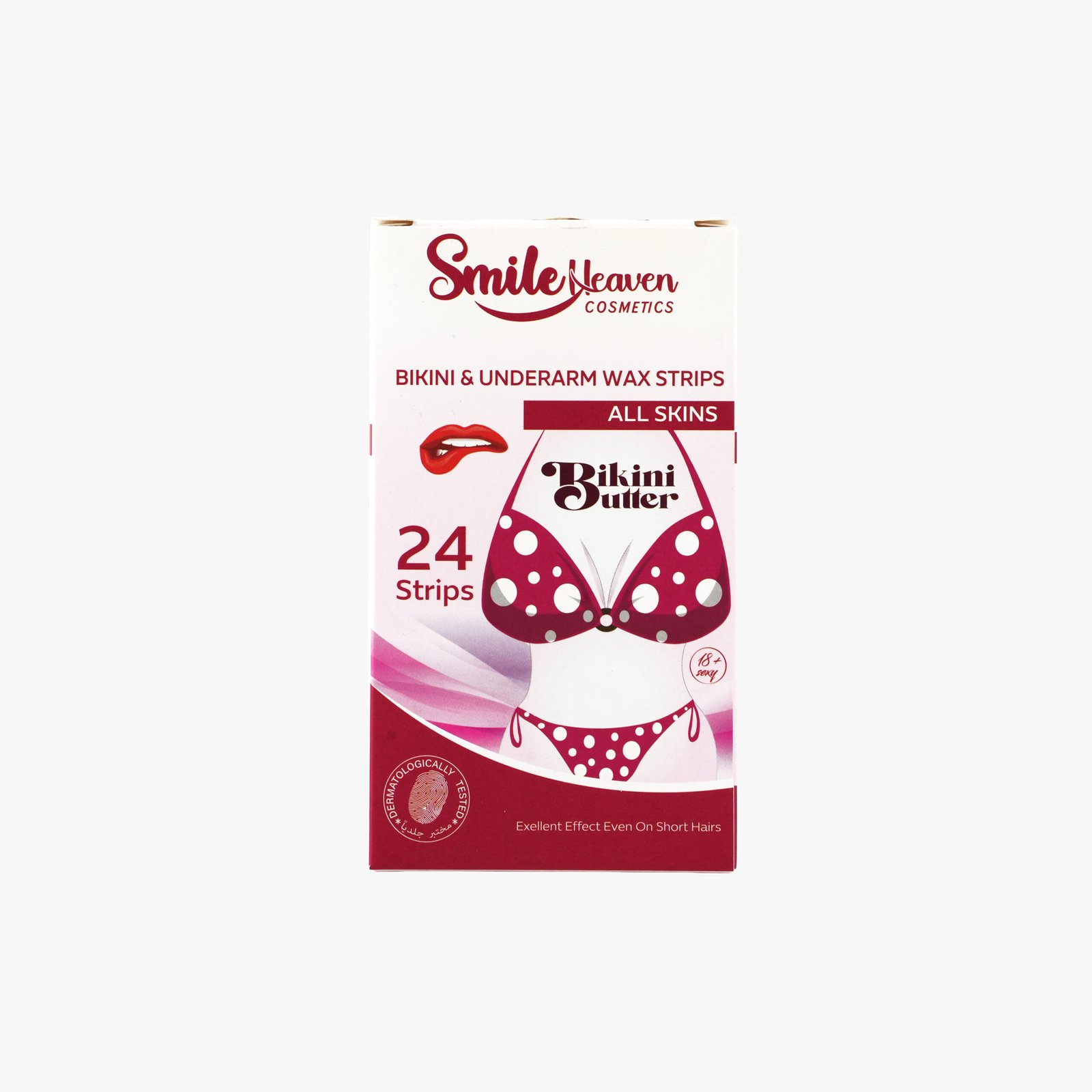 Bikini & Underarm Wax Strips by Smile Heaven Cosmetics, featuring 24 strips for all skin types with an excellent effect on short hair.