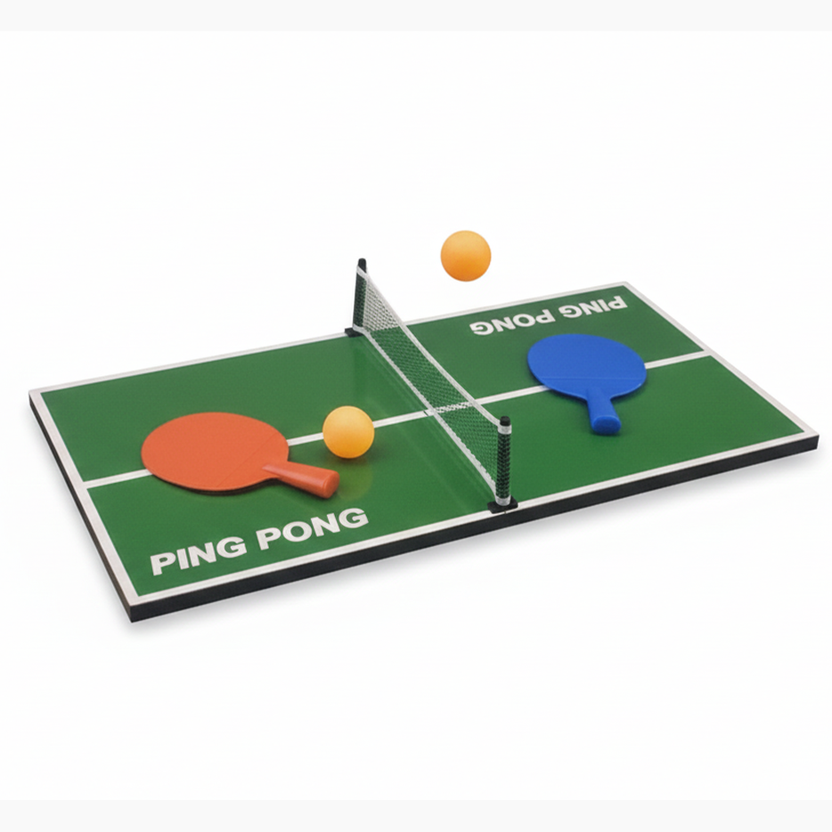Table Tennis Ping-Pong Sports Set for Kids is an engaging and educational self-assembly toy designed specifically for children aged 3 and above. This complete set promotes active play, enhances hand-eye coordination, improves reflexes, and fosters strategic thinking. The durable design is crafted from high-quality materials to ensure long-lasting use and safety. The package includes a miniature table tennis board, two colorful paddles, one ball, and a net for endless ping-pong fun indoors.