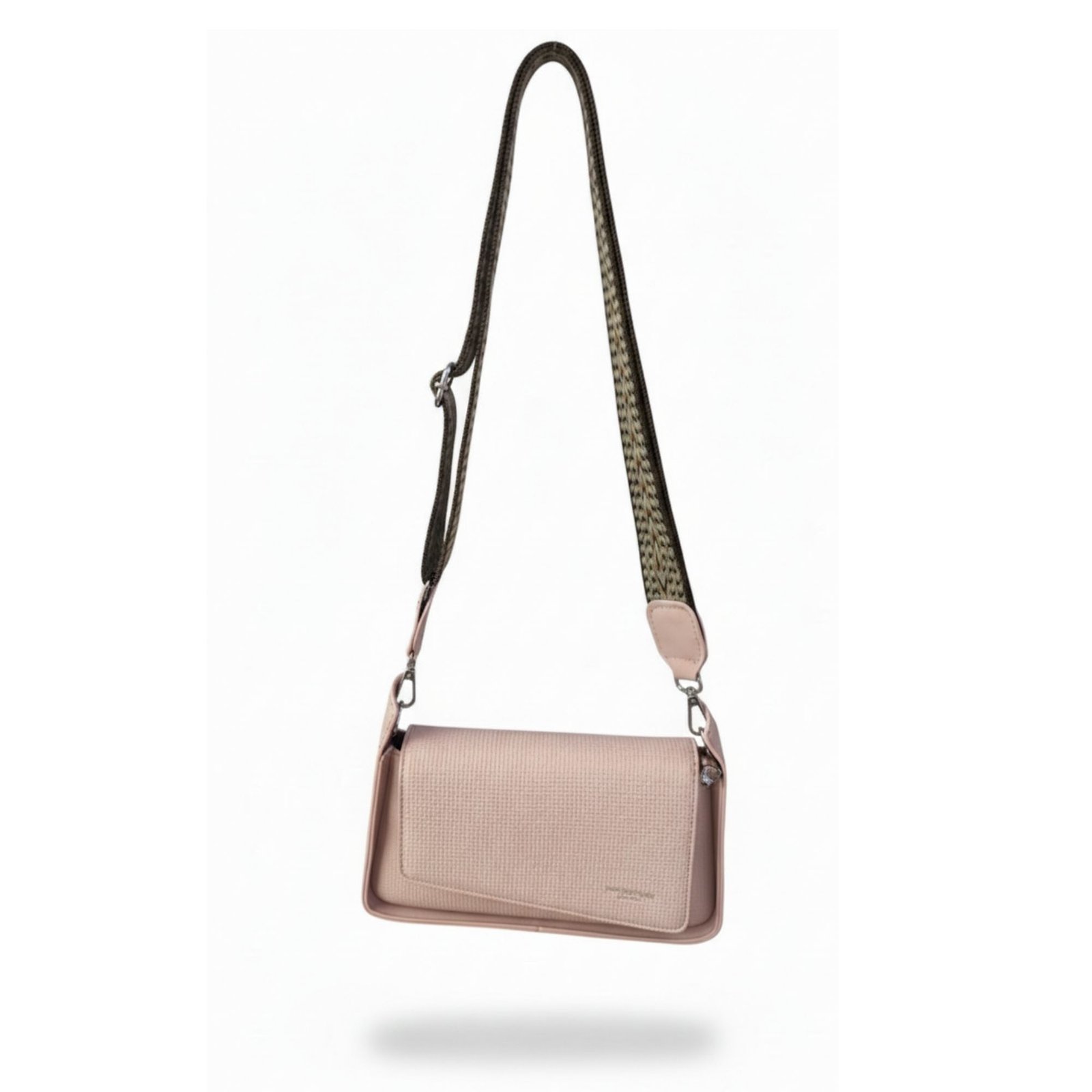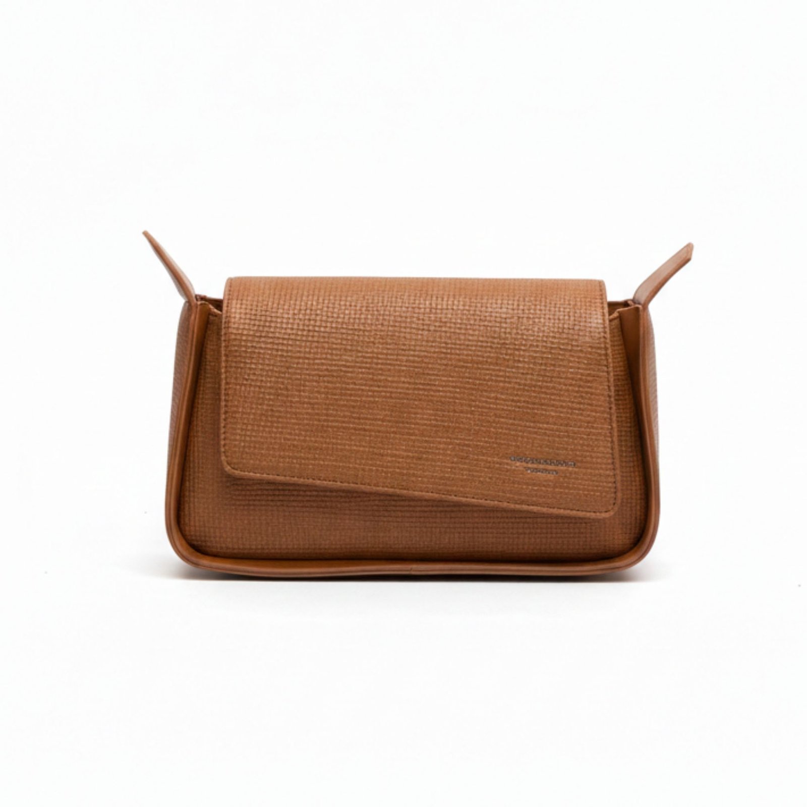 Textured Leather Asymmetrical Clutch with 3 Straps is a multi-functional bag featuring a modern diagonal flap and three interchangeable straps for various styles.