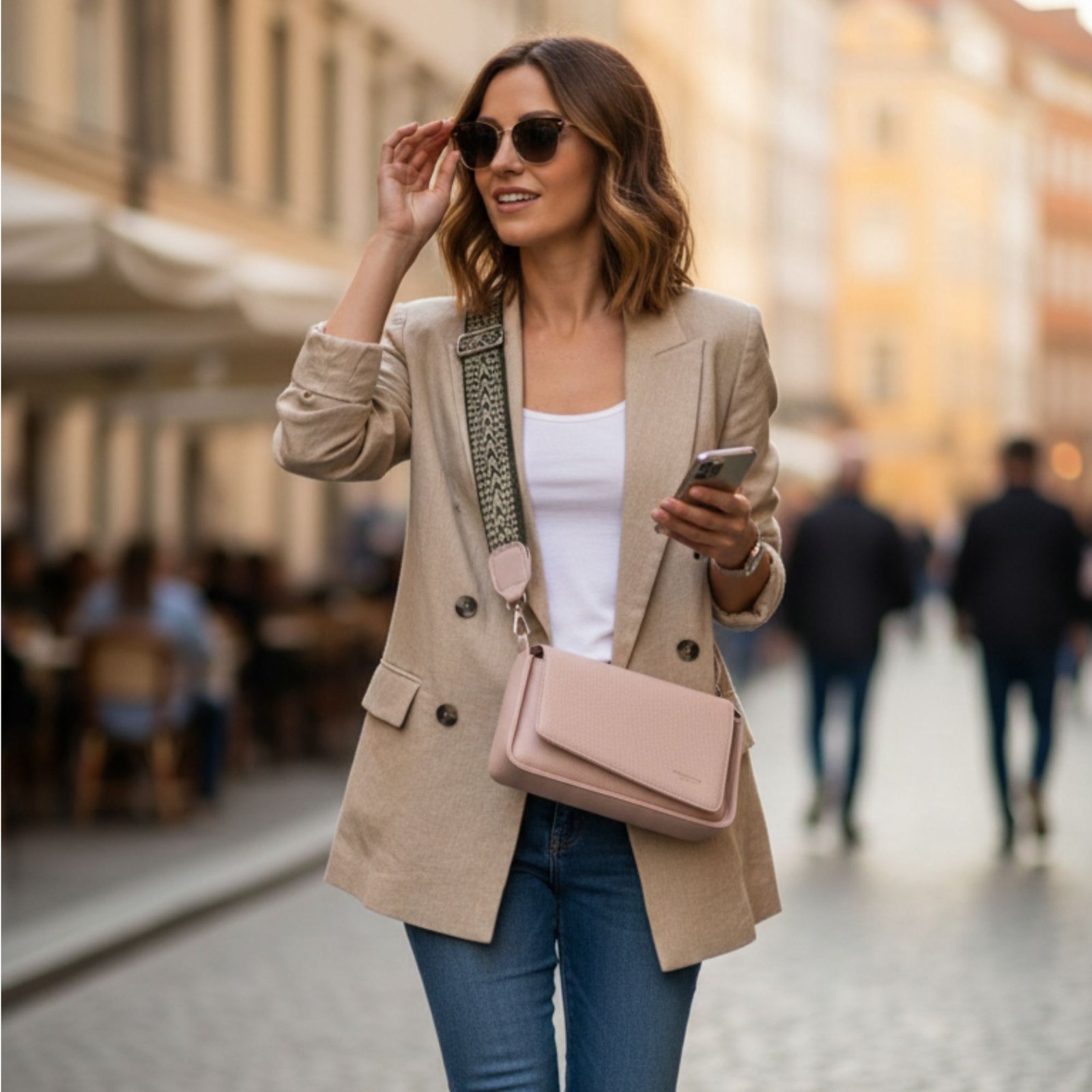 Textured Leather Asymmetrical Clutch with 3 Straps is a versatile and stylish accessory designed for modern functionality. It features a unique slanted front flap and a premium grainy texture. This model is exceptionally adaptable, coming with three different detachable straps: a wide leather strap for casual wear, a delicate metal chain for evening events, and a thin adjustable leather strap for a classic crossbody look.