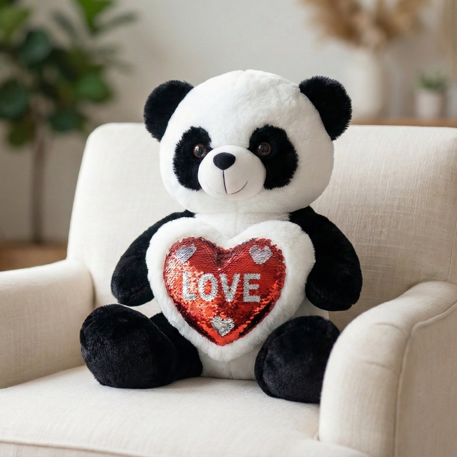 Valentine’s Day Panda Plush with Reversible Sequin Heart 40 cm