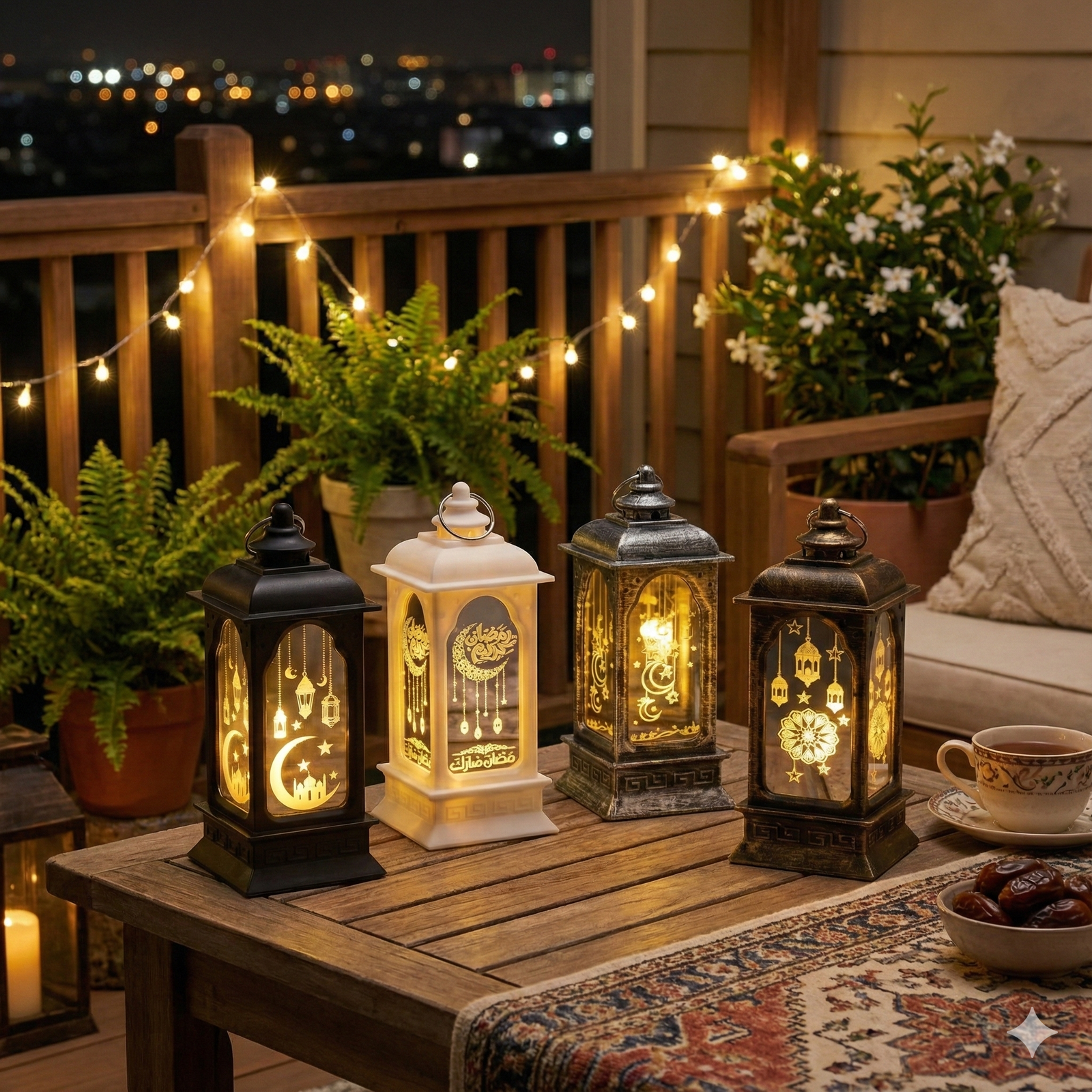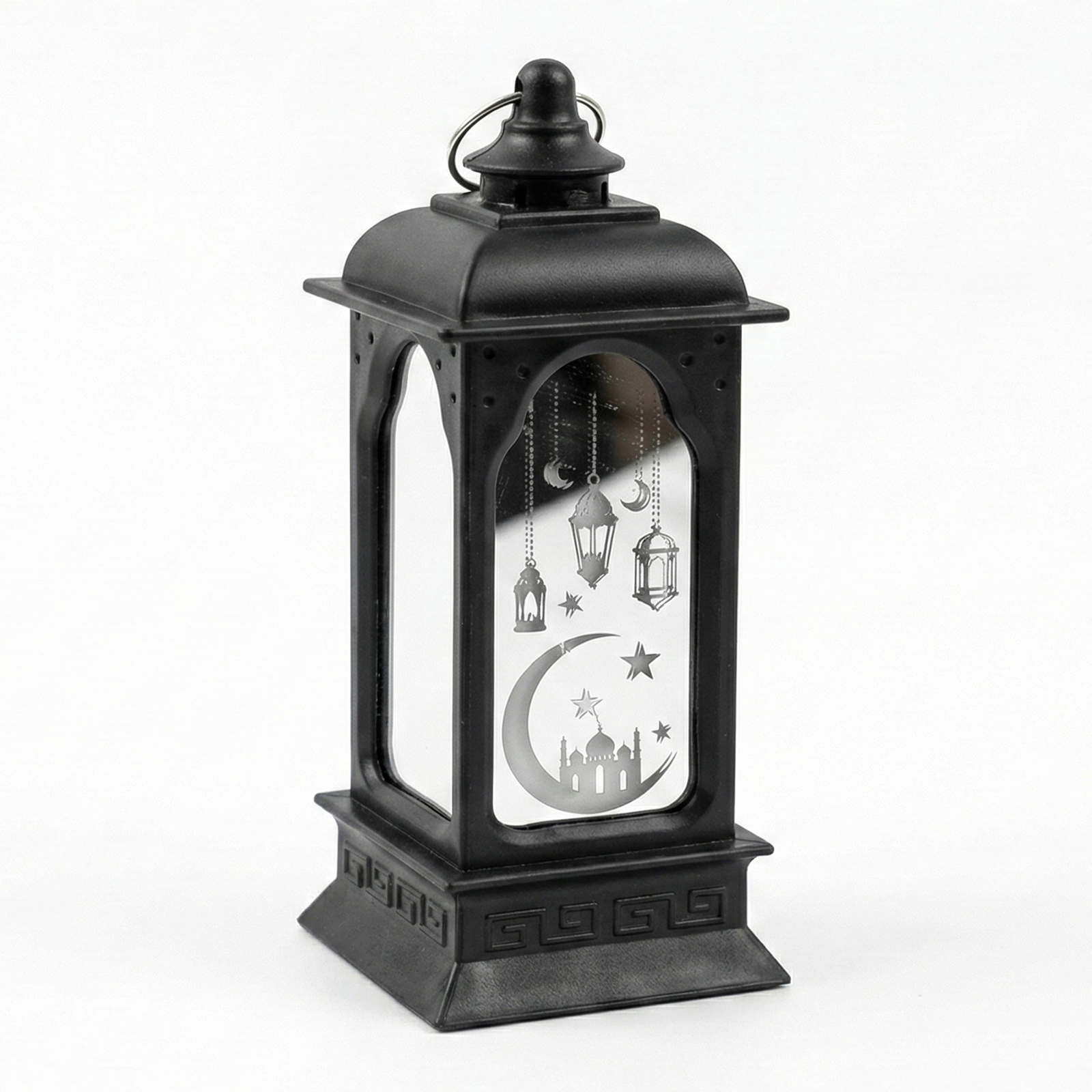 LED Ramadan Mubarak Lantern is an elegant decorative piece designed to enhance the spiritual atmosphere of your home during the holy month. Crafted from high-quality, durable ABS plastic with a clean white finish, this lantern features four mirrored glass panels. These panels are intricately printed with Arabic calligraphy that reads “Ramadan Mubarak,” alongside traditional motifs like crescent moons and hanging lanterns. The internal LED provides a flicker-free, warm yellow glow that reflects beautifully off the mirror surfaces, creating a serene and festive ambiance. It is battery-operated for safe, flameless use and includes a top hanging ring for versatile placement on tables or mantels.